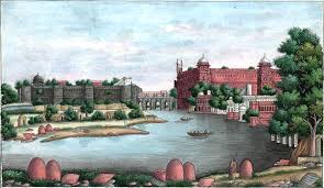 along the river, and these (the ancient Hanuman Temple beyond the back of the Red Fort) are some of